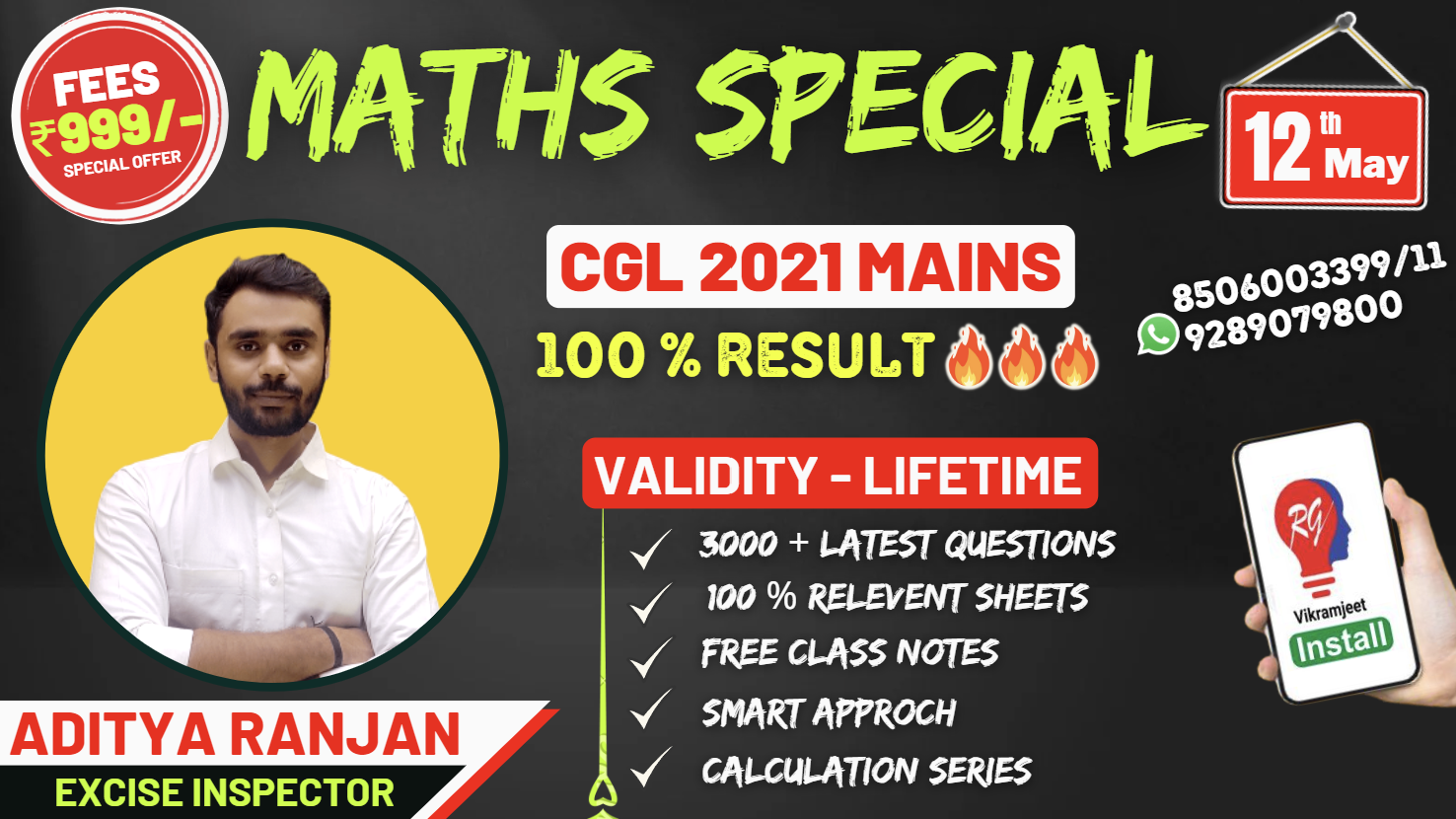 Aditya Ranjan is the best teacher of Maths. He has Cracked SSC CGL/CHSL/CPO/CDS (3)NDA & many exams and is selected as EXCISE INSPECTOR Through SSC CGL 2019 . He has SCORED 227/200 in Quants in SSC CGL 19. His techniques of solving questions are unique and you will be amazed by his SMART APPROACHES (Without Pen). He lifts Students from ZERO TO HERO LEVEL. This MATHS course covers all the competitive exams like – SSC Exams || Railway || Banking || Defence and other Exams. JOIN BATCH NOW & You will be the next topper under guidance of a topper,mentor and an educator ADITYA RANJAN SIR. Remember his words "INSPECTOR है INSPECTOR बनाएंगे "