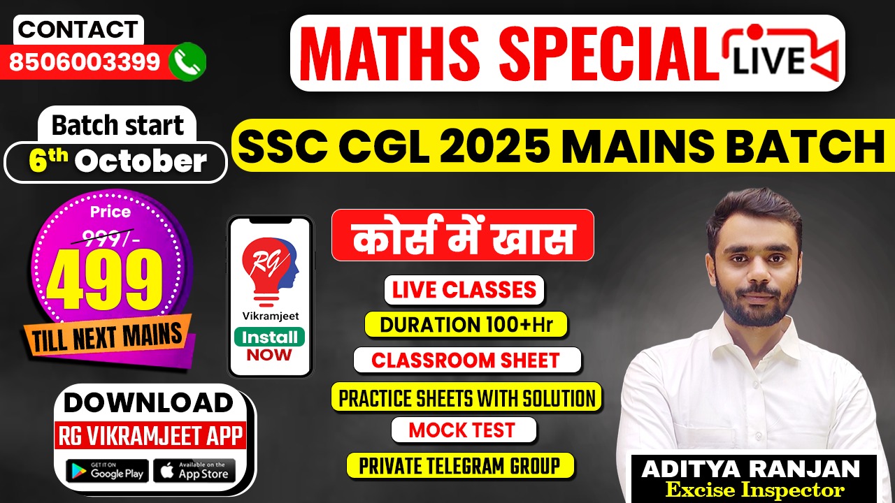 SSC CGL 2025 MAINS Maths batch BY Aditya Ranjan Sir starting From 06 Oct 2025.