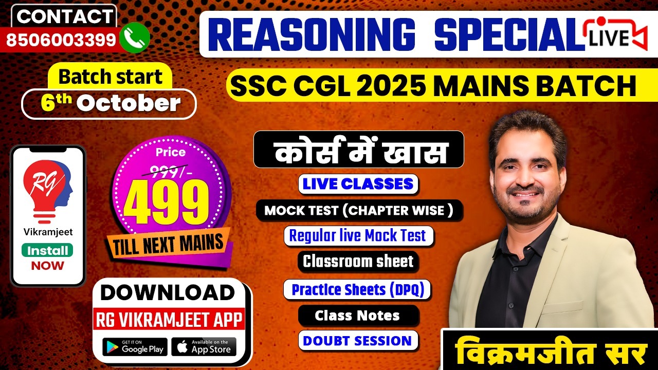 SSC CGL 2025 MAINS Reasoning batch BY Vikramjeet Sir starting From 06 Oct 2025.