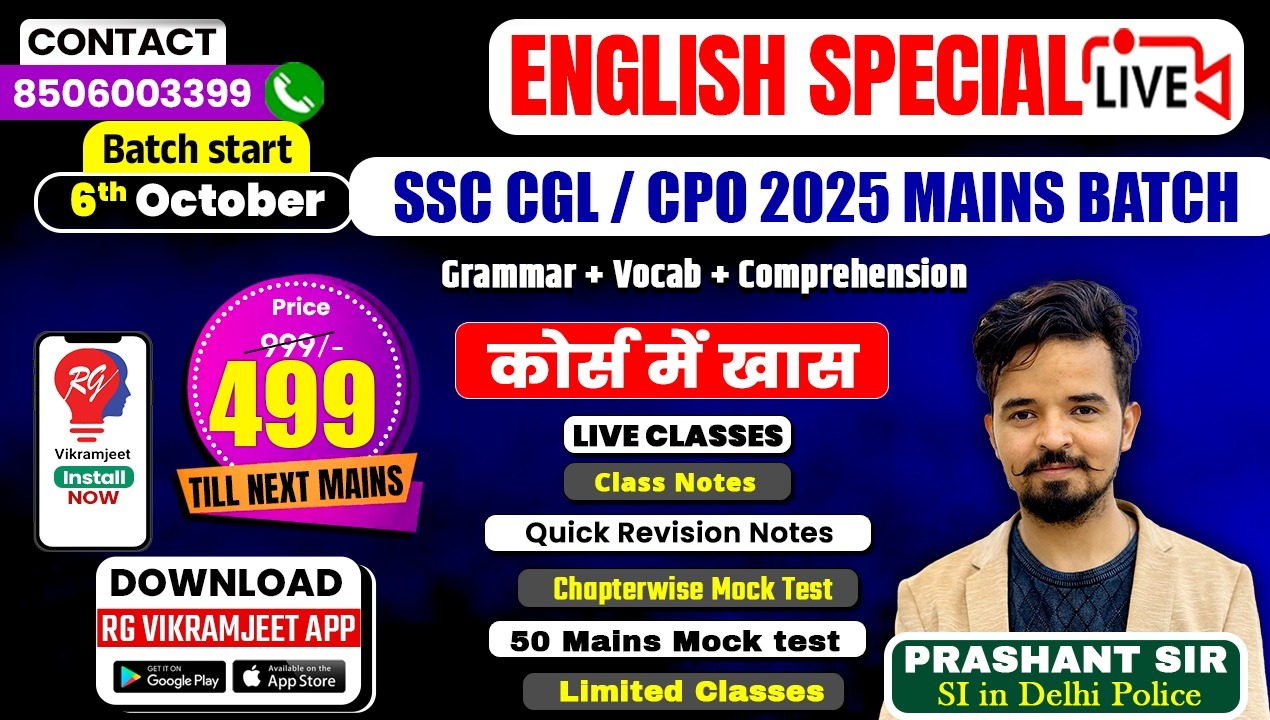 SSC CGL 2025 MAINS English batch BY Prashant solanki Sir starting From 06 Oct 2025.
