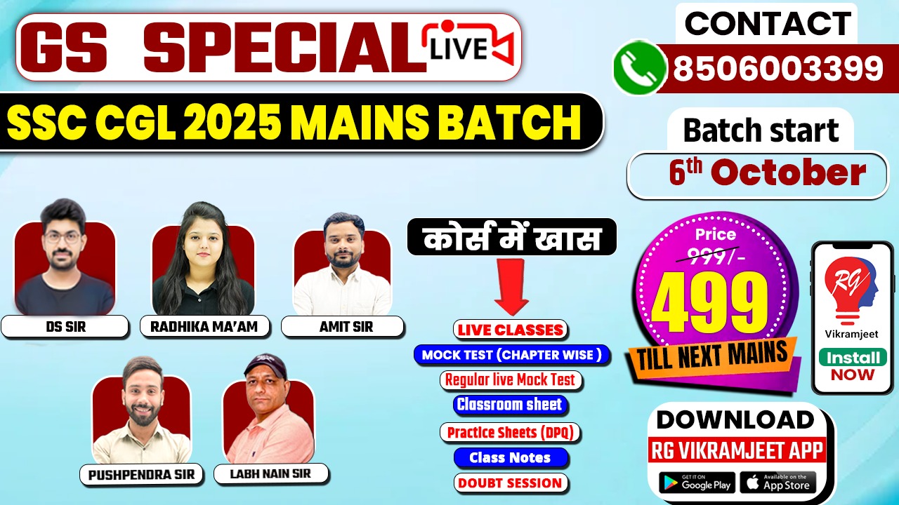 SSC CGL 2025 MAINS GK/GS batch BY Radhika mam ,DS Sir & GS team starting From 06 Oct 2025.